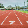 会場となる市内の陸上競技場は、市内の陸上競技大会が行われた競技場と同じ場所です。陸上競技大会は5月でしたが、駅伝大会は2月のため、以前見た競技場の青々とした天然芝が枯れており、また違った景色となっていました。
