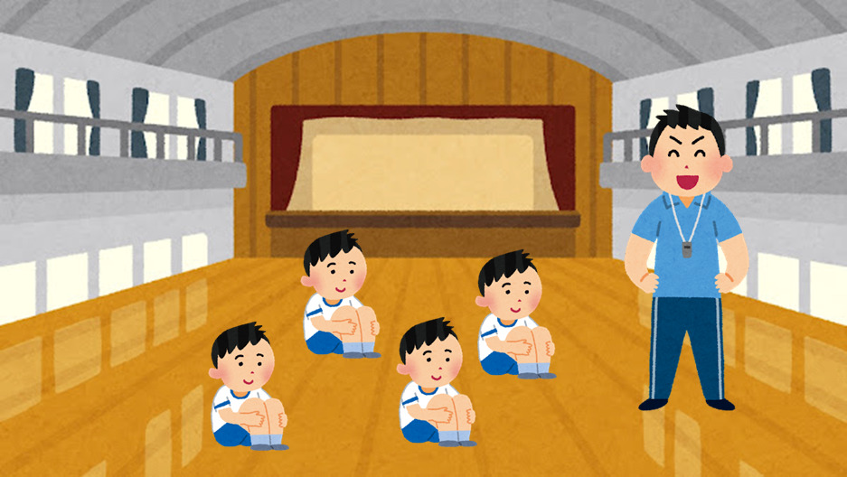 後日、駅伝大会に参加を希望した生徒たちが体育館に集められ、先生から大会に関する注意事項を伝えられます。